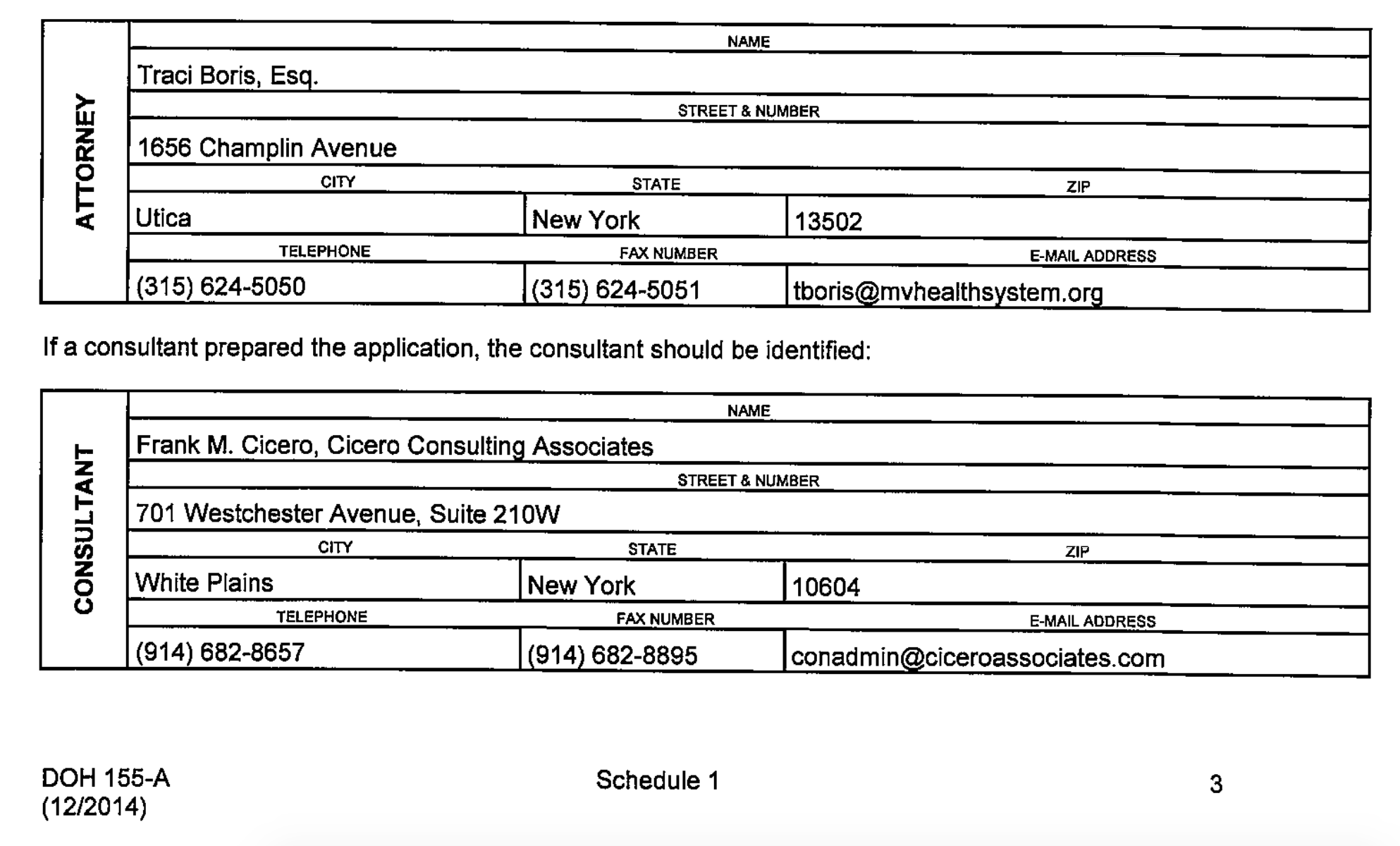 Cicero Consulting Associates helped MVHS apply for their C.O.N. (PDF), which was signed by Frank M. Cicero.