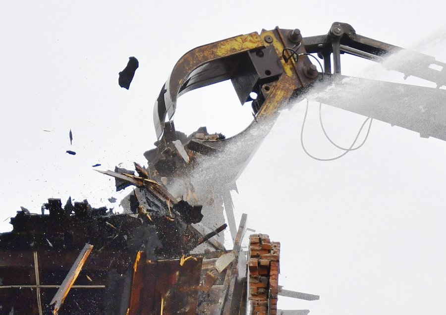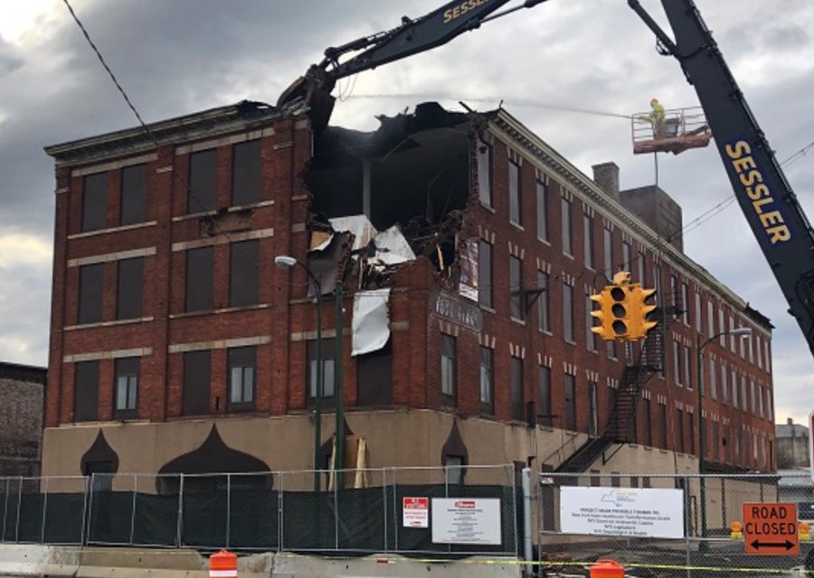 More buildings coming down in the hospital footprint on Columbia St. in Utica.@MVHealthSystem @WKTV pic.twitter.com/ybrSPu4BZ6