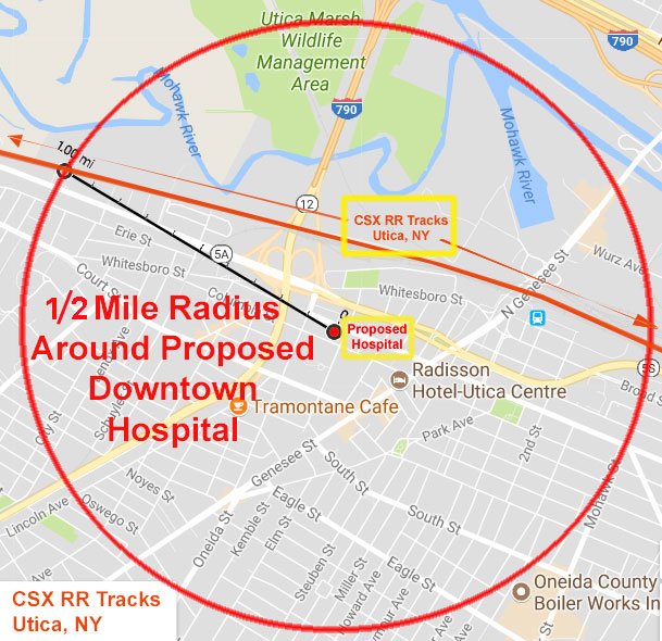 Hazard/Risk Mitigation: Downtown Utica is undesirable hospital site, just 2,000 ft from fright railroad = "RED ZONE" https://t.co/LHNbw9WonX pic.twitter.com/8tCpgI5eKi