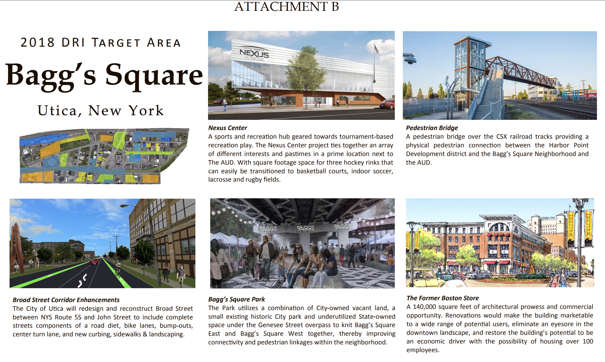 Even with these achievements ,more work needs to be done and we need the support of the Mohawk Valley Regional Economic Development Council to continue to achieve results. The attached application seeks funding through the Governor's Downtown Revitalization Initiative program for the Bagg's Square neighborhood. As you will see, the application builds on the successful investments New York State and others have already made in Bagg's Square .
