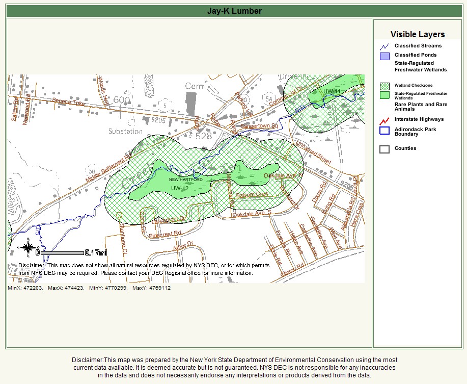 In fact a stream runs right through it all, view the DEC map Jay-K Lumber. Here's another story touching on Sangertown; Drainage Pond At Sangertown Explained. Which begs the question, are the ditches and ponds at St. Luke's mere drainage, and not true wetlands? Does the DEC make them equal?